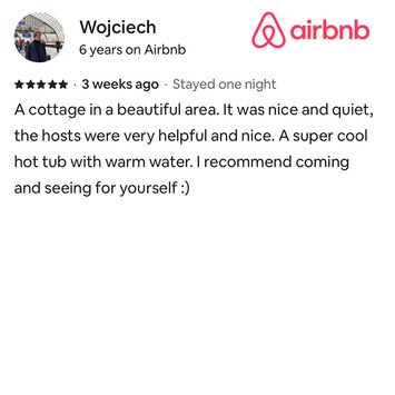 Domek w przepięknej okolicy. Było miło i cicho, gospodarze byli bardzo pomocni i mili. Super fajne jacuzzi z ciepłą wodą. Polecam przyjechać i zobaczyć samemu :)